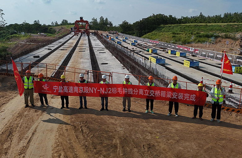 項(xiàng)目動(dòng)態(tài)|寧鹽高速南京2標(biāo)毛鐘線分離立交橋箱梁 架設(shè)圓滿完成
